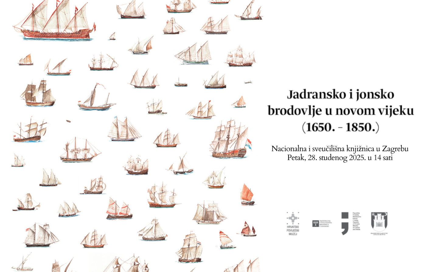 Hrvatski povijesni muzej poziva vas na otvorenje izložbe Jadransko i jonsko brodovlje u novom vijeku (1650. – 1850.), koja će se održati u Nacionalnoj i sveučilišnoj knjižnici u Zagrebu od 28. studenoga do 12. prosinca 2025. Izložba donosi rezultate višegodišnjeg istraživanja povjesničarke Zrinke Podhraški Čizmek, utemeljenog na iznimno bogatoj ostavštini hrvatskog povjesničara i publicista Nikole Čolaka (Janjevo, 1914. – Padova, 1996.), stručnjaka za povijest hrvatskog trgovačkog pomorstva.
